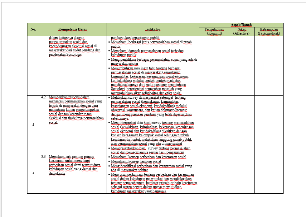 The curriculum used for Sociology was based on the 2013 Curriculum released by the Ministry of Education. This curriculum is specified also for a certain grade level. It has been divided into parts upon which the general overview of the classes in Sociology were indicated, including instructional materials and the details about the material.